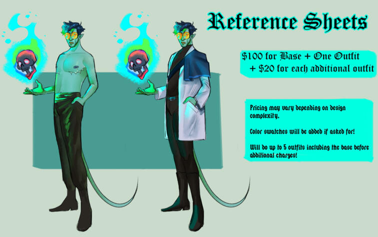 | Reference Sheet | $100 USD | +$20 USD per each, up to 5 |